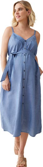 Move through your pregnancy or postpartum journey in this softly faded chambray dress boasting a convenient button-front closure perfect for on-the-go nursing.