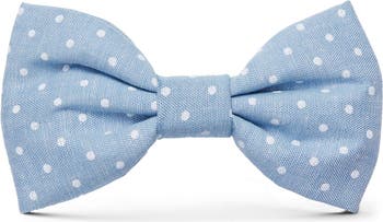 A classic polka dot pattern brings canine-approved luxury to a cotton chambray bow tie designed with elasticized loops that easily slide onto your dog's favorite collar.