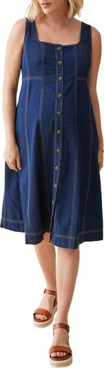 Keep you and your baby bump comfortable in a stylish chambray dress in a playful swing silhouette with a smocked panel at the back and contrast stitching. The button-up silhouette allows for easy, discreet nursing once baby arrives.