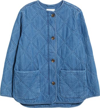 Do denim day the cozy way in a quilted jacket popped with a pair of roomy patch pockets.