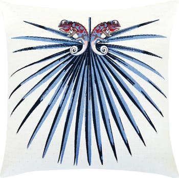 A fusion of artistry and nature, the exclusive Chameleon pillow is a captivating centerpiece. Featuring a detailed jacquard fabric woven in a variety of colors, this pillow adds visual impact with a touch of whimsy to any space.