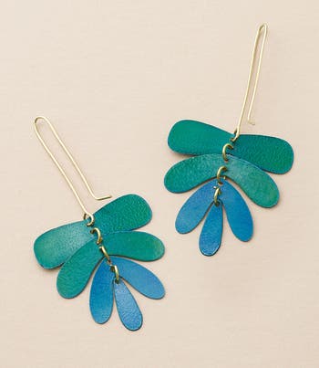 Elevate your jewelry collection while supporting sustainable and ethical fashion with the Chameli Teal Patina Dangling Leaf Earrings. Handcrafted with care, these earrings are a beautiful representation of our commitment to creating fashion that's good for both people and the planet. The beautiful teal patina and delicate dangling leaf design make these earrings a unique and stylish addition to any outfit. Plus, with each purchase, you're supporting fair trade practices and helping to empower artisans around the world. Explore our entire Chameli Collection here