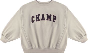 Bold lettering adorns the chest of a preppy crewneck sweatshirt that will keep baby cozy on chillier days.