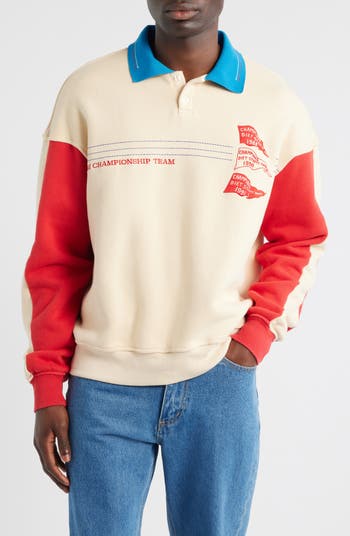 Retro sport embroidery brings vintage character to this sweatshirt finished with contrast sleeves for a bold athletic edge.