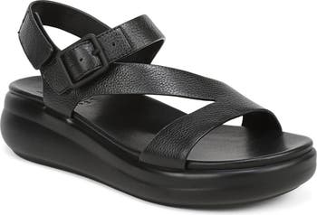 A platform sole and pebbled-leather straps bring everyday sophistication to this comfort-cushioned sandal.