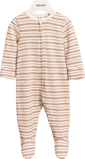 Baby will look adorable and keep comfy in this striped cotton footie that's perfect for bedtime or playtime.