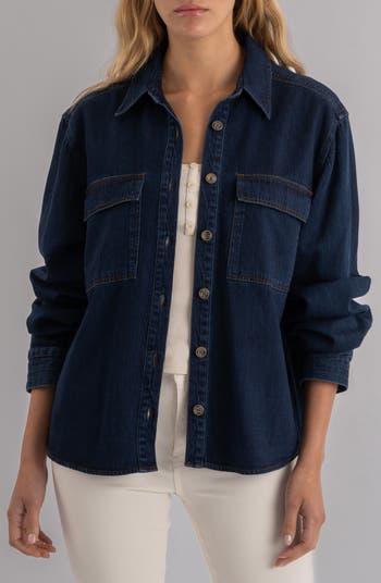 A trusty denim shacket is made in a dark wash and framed by dropped shoulders for a relaxed fit.