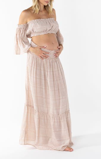Chantal Maternity Dress - Perfect for Photo Shoots & Baby Showers Capture beautiful moments in the elegant Chantal Maternity Dress, designed to make you feel radiant and stylish. This two-piece set is perfect for maternity photo shoots, baby showers, or any special occasion. With versatile styling options, it’s made to adapt to your look and comfort. Two-Piece Set – Ideal for creative styling in photo shoots and celebrations Ruched Edges – Features gentle elastic ruching for a flattering fit Maxi-Length Layered Skirt – Flowing overlay panels create a soft, ethereal silhouette Shoulder and Waist Flexibility – Wear the shoulder straps on or off, and the skirt above or below your belly for personalized comfort and style.