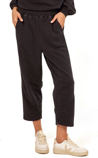 A mineral-washed finish brings a lived-in look to these cotton-blend fleece pants fashioned in a cropped, wide-leg silhouette.