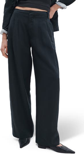 Fabric woven with linen gives these tailored pants a fluid drape and breathable texture. A high waist, front pleats and wide legs create a polished silhouette, while side pockets add everyday ease.