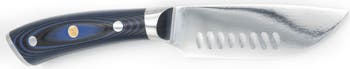 Prince of Scots Charcuterie Knife — Premium G10 Edition Elevate your grazing boards and culinary presentation with the Prince of Scots Charcuterie Knife, designed for effortless slicing, mincing, garnishing, and precision food prep. Featuring a mirror-polished 8Cr14MoV stainless steel blade and a sculpted G10 handle, this knife blends professional performance with signature Prince of Scots elegance — perfect for entertaining, gifting, and everyday gourmet cooking. Key Features Razor-Sharp Multi-Purpose Blade Perfect for slicing cheeses, cured meats, fruits, vegetables, herbs, and garnishes with precision. Hollow Edge (Granton Blade) Creates air pockets between the blade and food, ensuring each slice releases effortlessly — ideal for softer cheeses and charcuterie. Mirror-Polished Finish High-chromium steel is hand-polished to a radiant shine for luxury presentation at any table or event. Ergonomic G10 Handle Sculpted for superior comfort and balance. A refined right-side ridge aligns naturally with the fingers for a secure, confident grip. Versatile Kitchen & Entertaining Tool Ideal for charcuterie boards, cheese pairings, small prep tasks, and gourmet cooking. Blade Material Spotlight: 8Cr14MoV Premium Steel The Charcuterie Knife is forged from 8Cr14MoV, a superior stainless steel prized for its sharpness, durability, and polished finish. Trusted in premium culinary knives, this material brings professional-grade performance to your home kitchen and entertaining repertoire. Razor-Sharp Edge Retention Holds a fine, precise edge for clean, consistent cuts. High Corrosion Resistance Designed to withstand moisture, acidic foods, and daily prep without staining or dulling prematurely. Luxurious Mirror Finish Chromium-rich steel allows the blade to be polished to a brilliant, stain-resistant shine. Easy to Maintain & Re-Sharpen Sharpens quickly at home — no advanced equipment required. Durable Hardness (HRC 57–59) Tough enough for daily use without risk of chips or fractures. Specifications Total Length: 24.6 cm Blade Material: 8Cr14MoV Stainless Steel Handle Material: G10 Composite Finish: Hand-polished mirror finish Blade Style: Hollow Edge / Granton Blade