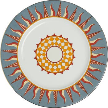 Our Charger Plate is made from the highest quality porcelain with a hand-painted gold trim. What is a charger, you ask? Both functional and decorative, it's an ornamental placeholder to spice up your table settings, substitute for a placemat or use as an extra big serving plate for when you're really, really hungry. Inspired by the Ancient Egyptian Sun God, Ra, this bountiful beauty layers perfectly under our Rainbow Soup and Dinner Plates, or alongside our delicious Mixed Dessert Plate set from the Solar Collection. Oh, and it goes in the dishwasher. You're welcome.