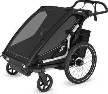Why parents will love it: The well-designed system converts from a regular stroller (four wheels) to a bicycle trailer (two wheels) easily with the Thule FlipWing system, plus with the included conversion kit, it easily transforms into a jogging stroller. The Thule Click n' Store onboard storage lets you stow the conversion system for changes on the go. Extra-large under cargo space with a secure zip closure can be stored out of the way for increased kick-stride space while jogging. Finally, the rear LED light adds an increased level of visibility and safety throughout all conditions (power bank sold separately).