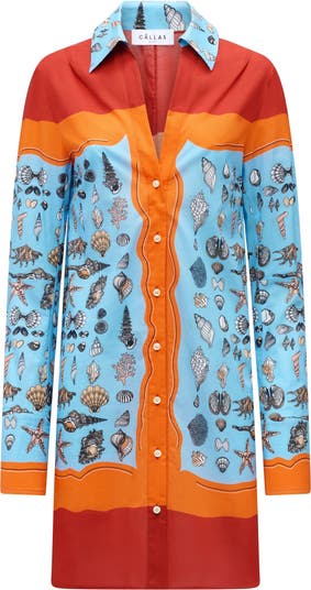 Charisse is a vee-neck, button front, long sleeve shirt dress made in Italian printed cotton voile featuring a shell print design. Made in Italy