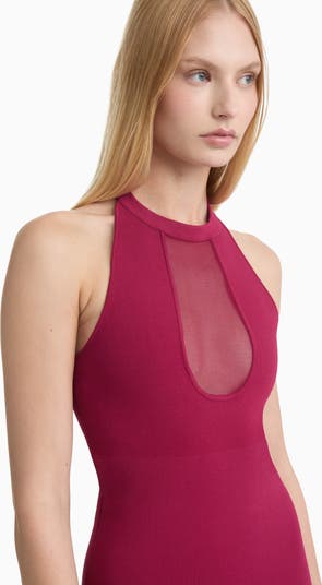 The Charlene features a halterneck bodice with a sheer keyhole detail and a full sheer skirt that flows with ease. Compression Level 3, this patent-pending knit paneling targets where the densest sculpt-knit tech is needed and gives where movement and comfort require it.