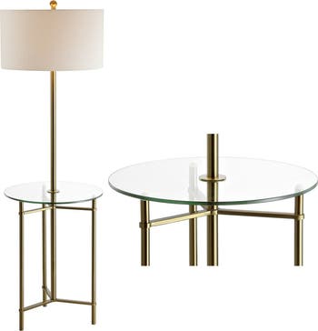Charles 59" Metal/Glass LED Side Table and Floor Lamp, Brass