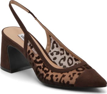 Leopard spots add untamed allure to this mesh slingback pump set on a canted block heel.