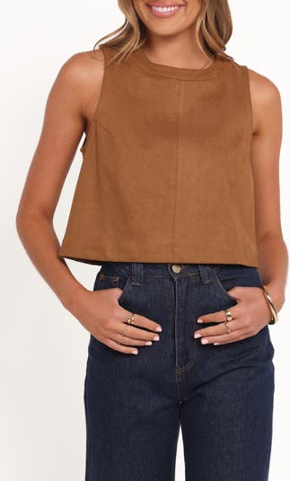 Buttery soft faux suede brings rich texture to this sleeveless top cut in a cropped silhouette.