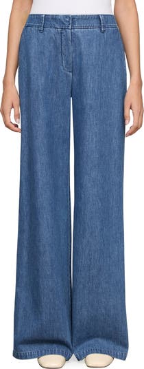Garment-washed Italian-cotton chambray brings lived-in softness to these breathable, lightweight wide-leg pants shaped with contoured darting at the back.