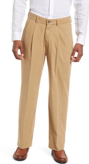 Lightweight washed cotton poplin elevates versatile pleated khakis in a traditional, full-tailored cut.