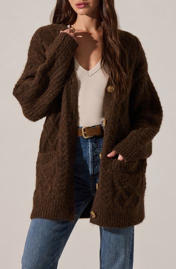 Knit from fuzzy wool-kissed yarns, this cozy oversized cardi is an essential piece for when sweater weather rolls in.