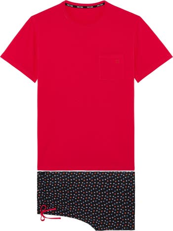 The CHARLI pajamas are short pajamas combining two matching pieces: comfortable Bermuda shorts with a drawstring waist and a plain red short-sleeved T-shirt. Made of cotton, these lightweight summer pajamas have an ultra-soft texture that provides optimum comfort for a good night's sleep. The breathable qualities of cotton naturally regulate body temperature, keeping you cool in the summer months. The elegant design of these pajamas, with their round collar and sewn-on chest pocket with embroidered HOM logo, make them chic and distinguished nightwear. The multicolored polka dot prints add a colorful, modern touch to this loungewear. All our sleepwear is OEKO-TEX® certified, a guarantee of environmentally friendly manufacturing and quality, skin-friendly textiles.