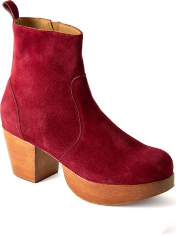 - Suede upper, leather lining, wood platform and heel with rubber sole