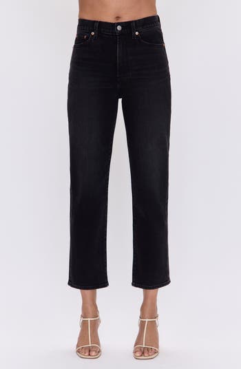 Low-stretch denim and a well-worn dark wash define these cropped, straight-leg jeans that look great any day of the week with a comfy high waist.