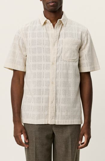 Sunny skies and warm breezes beckon when you build your weekend look with the airy, openwork fabric of this cool, breathable organic-cotton button-up.