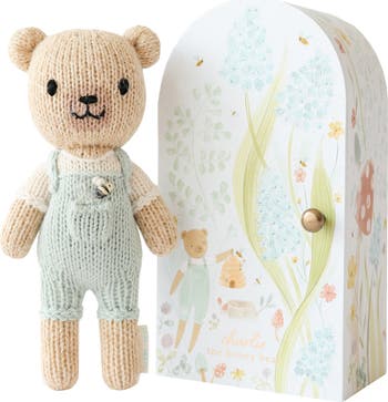 Designed as part of the brand's heirloom-worthy Tiny Collection of artisan dolls, this hand-knit bear comes complete with a stunningly watercolored home that oepns to a magical night scene of twinkling foiled stars.