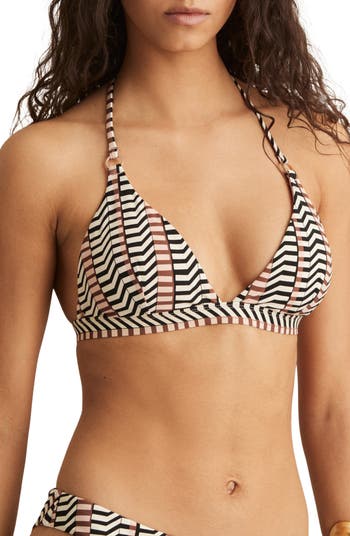 Mixed stripes pattern this vacation-ready bikini top fashioned in a timeless triangle silhouette.