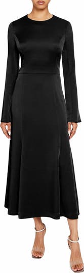 - Long Sleeve Fit & Flare Midi Dress in Smooth Crepe