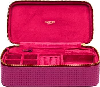 Crafted from premium woven leather in vibrant hues, this elegant case combines fashion with function, ensuring your precious pieces stay organised and protected wherever you go.The soft suede interior offers a plush home for your jewellery. Designed with two tier storage, it features multiple compartments for rings, earrings, necklaces and accessories. The upper tray lifts to reveal additional space, perfect for storing larger pieces. Equipped with a leather handle and a smooth zip-around closure, this compact case is the perfect travel companion for the modern collector.