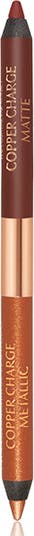 How to use: Use the matte shade along the top lashline to create your desired shape. Charlotte recommends pulling the outer corners upward and outward for a more lifted look. Use the metallic side to brighten by placing in the waterline along the bottom lashline and inner corners.