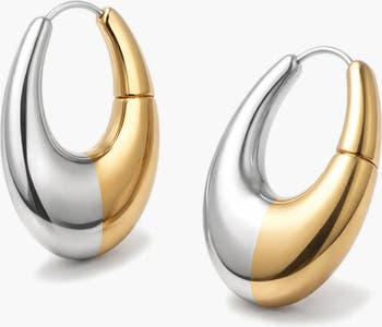 Dual tone. Singular impact. The Charlotte x YOJ Eclipse Midi Hoops in Two Tone are designed to make a statement from every angle. Crafted in a bold, curved silhouette, each hoop blends high-polish silver with rich 18ct gold plating in a seamless, fluid contrast. The sculptural form tapers gently, creating volume without heaviness. The interplay between cool silver and warm gold catches the light differently with every movement, giving the piece depth, dimension and undeniable presence. Modern yet timeless, these hoops are designed to elevate even the simplest look from crisp tailoring to effortless evening styling. Wear them as your signature statement or pair with mixed-metal pieces for a confident, curated finish. Striking. Contemporary. Unapologetically bold.