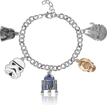 Showcase your love for Star Wars with this Two-Tone Charm Bracelet. Featuring iconic characters like Stormtrooper, R2-D2, and C-3PO, this collectible jewelry piece brings a touch of the galaxy far, far away to your style. Perfect for any Star Wars fan or collector.
