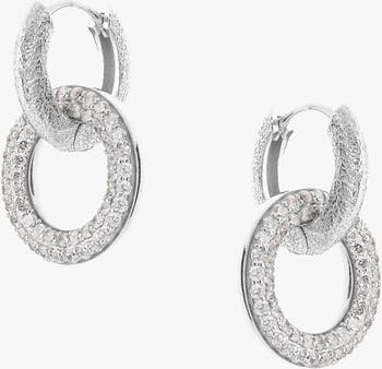Product Highlights Huggie hoop with Cubic Zirconia inset drop. Remove the cubic zirconia drop hoop and wear the hinge hoops solo. Style with the matching Grand Necklace and Grand Bracelet.