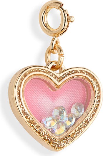 Add some extra sparkle to your kiddo's jewelry stack with this delicate glitter-rimmed heart charm filled with shimmering rhinestones.