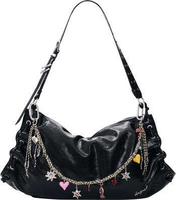 Desigual Charm Strap Faux Leather Shoulder Bag, Main, color, Black