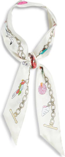 Nautical charms bring a whimsical aesthetic to this slender silk scarf that will put the finishing touch on your standout looks.