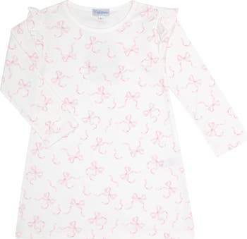 A playful yet refined piece, this dress is perfect for daytime outings, family gatherings, or casual playdates. Made from ultra-soft Pima cotton, it features fluttery sleeves, a comfortable fit, and our signature pink bow print. Style it with a matching hat or blanket for a complete look.