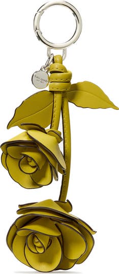 A pair of 3D flowers crafted from smooth leather cascade down a chic fob perfect for affixing to your keys or a favorite handbag.