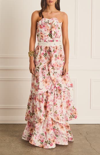 A standout piece from our Dream Weaver collection, this strapless maxi features a tiered petal skirt, tie back, and contrast waistband for a chic, flattering look. With a back zipper and full lining, it's as effortless masterpiece. Get ready to make a statement in the Kristian Dress by Aqua Blu Australia.