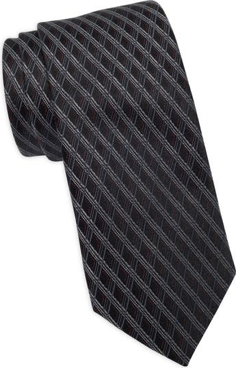 A gridded geometric pattern creates a 3D effect that nearly pops off the surface of this elegant tie crafted from lustrous silk jacquard.