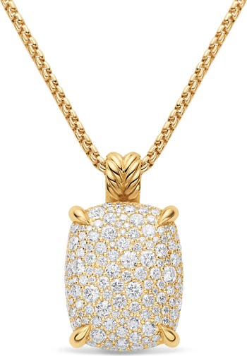 Graceful, sculptural form defines an 18-karat-gold necklace featuring a soft-edged pendant shimmering with pavé diamonds and topped by the signature cable twist.