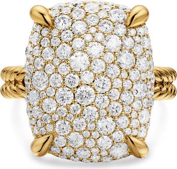 Chatelaine represents a perfect fusion of Sybil and David Yurman’s combined love of art—the marriage of a sculptor and a painter, graceful form and vibrant color. This richly textured ring features a cushion-cut setting alight with glittering pavé-set diamonds.