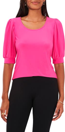Styled with elbow-length balloon sleeves, this stretchy scoop-neck top pairs well with work or play.