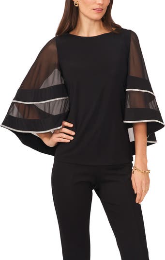 Twinkling rhinestones trace the edges of an effervescent blouse boasting elegant wide sleeves that sweep into the back.