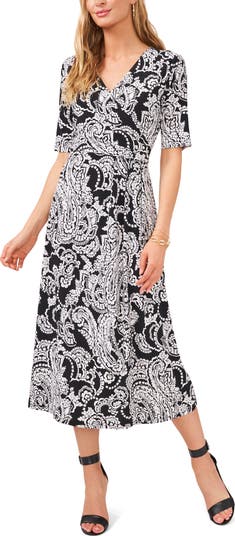 Add to your beloved black and white collection with this knit dress, done with a touch of stretch and covered in a classic print.