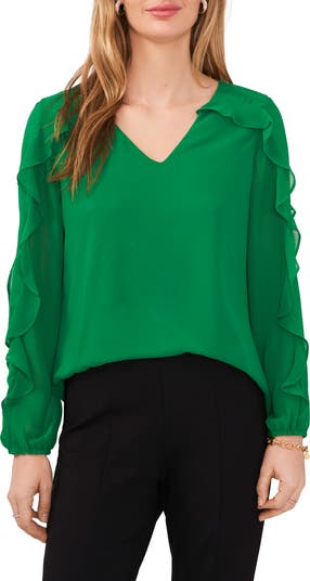 Cascading ruffles wend their way down the sleeves of this lovely lightweight georgette blouse.